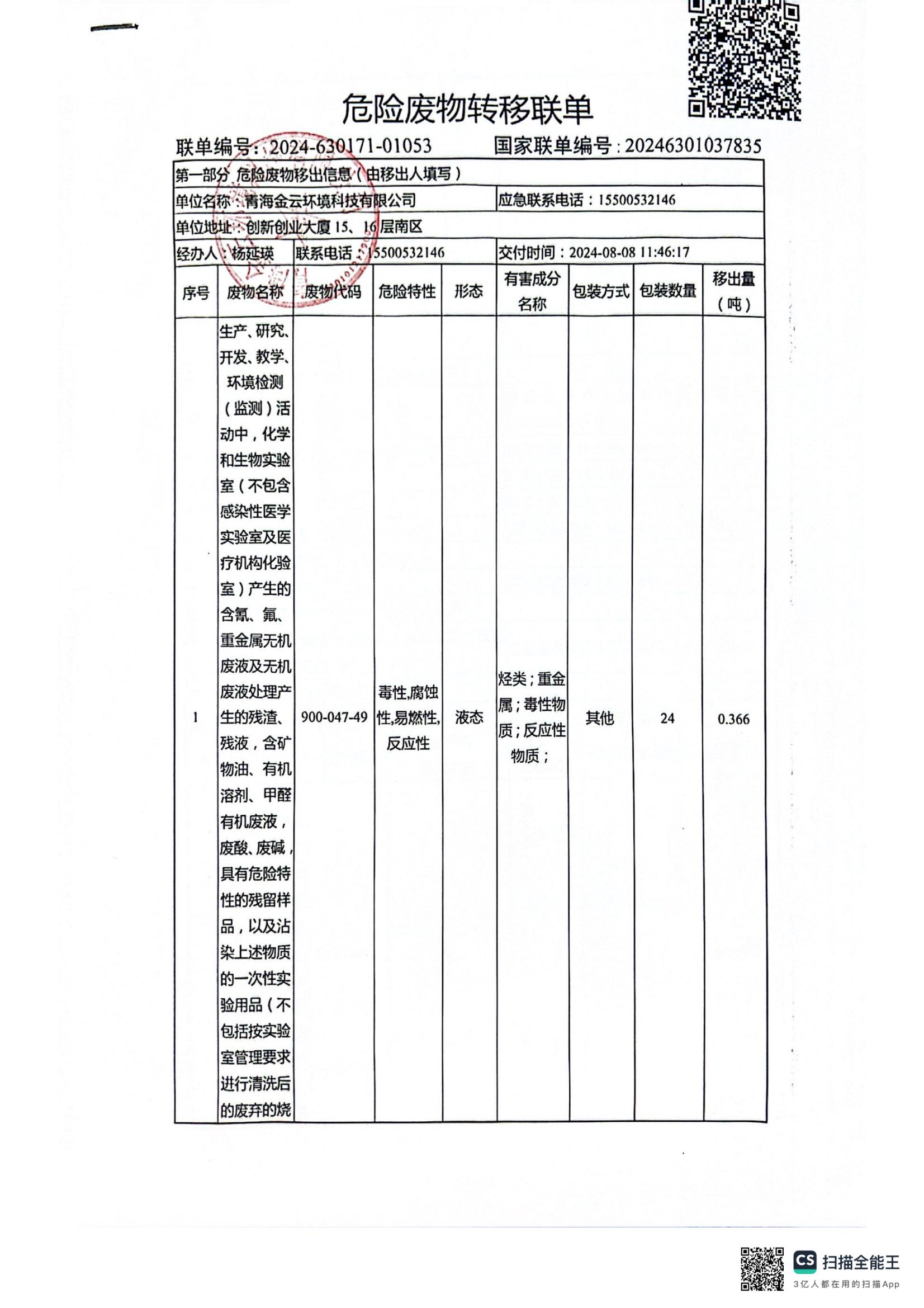 危險廢物轉(zhuǎn)移聯(lián)單